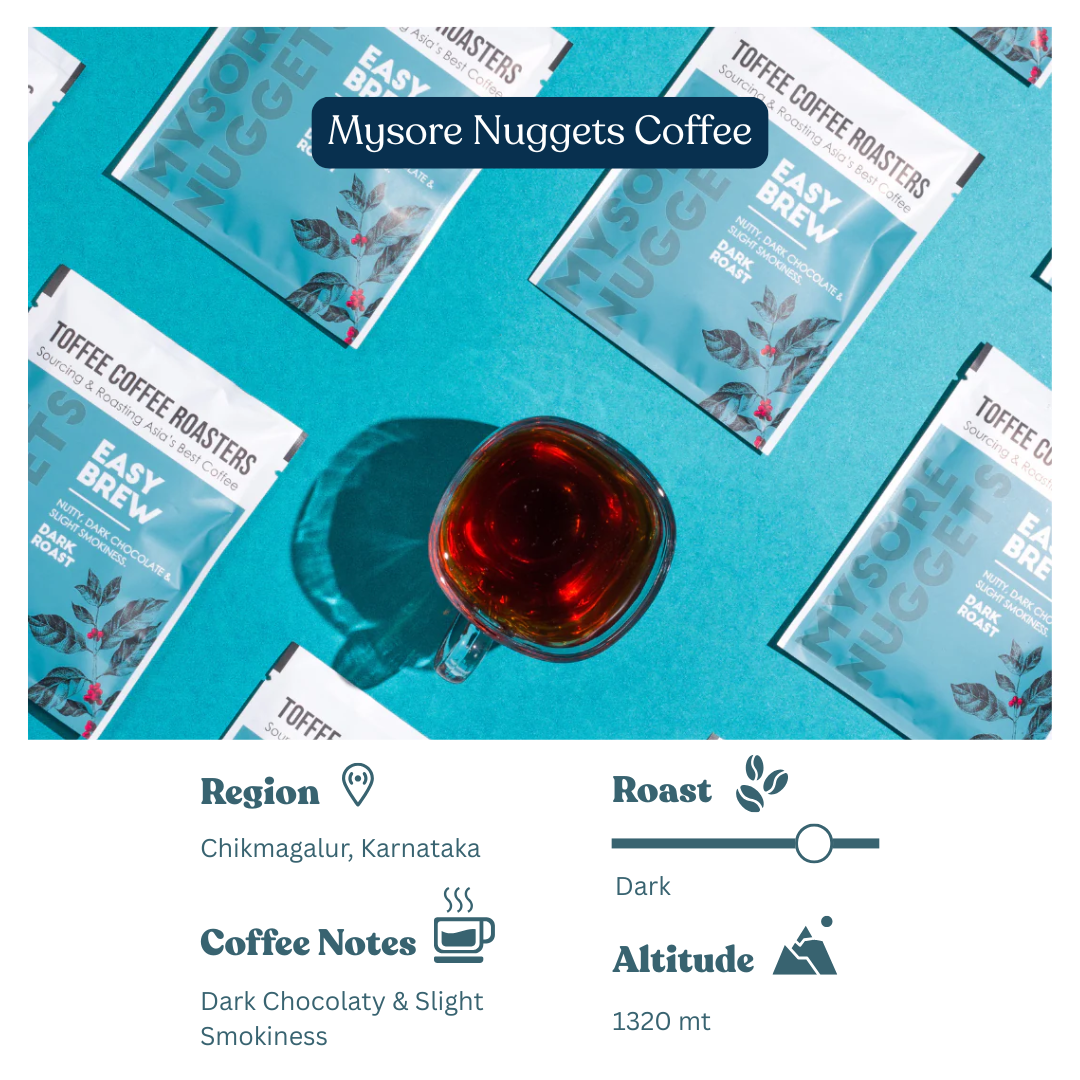 Radhika Bhatia, Product ManagerThe freshness was definitely noticeable in the aroma and flavor. Mysore Nuggets Dark Roasted beans arrived with great aroma and brewed up an incredible cup of rich, deeply flavored coffee, both in the Chemex and in the Moka pot.